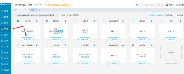 进入卡片列表勾选【显示清理卡片】点击生成清理凭证即可,可选择生成凭证的方式