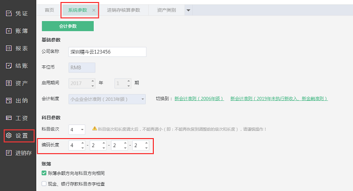 【注意】科目编码级次一旦改大不能再改小,例如不可以由4-3-3-3改为4-2-2-2。