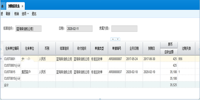 注:到期日是指应收单收款计划的到期日,计算日期是过滤条件中输入的日期