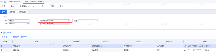 • 调整分录模板增加调整类型,类型为报前调整的分录模板可应用于生成报表调整分录