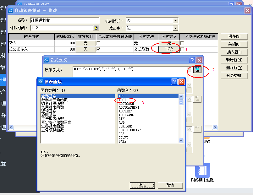 分录贷方选按公式转入,公式定义,下设录入公式。按F7选择键。