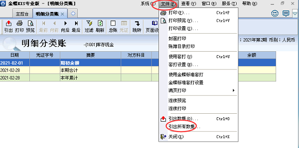 金蝶专业版软件如何一次将所有科目的明细账全部导出