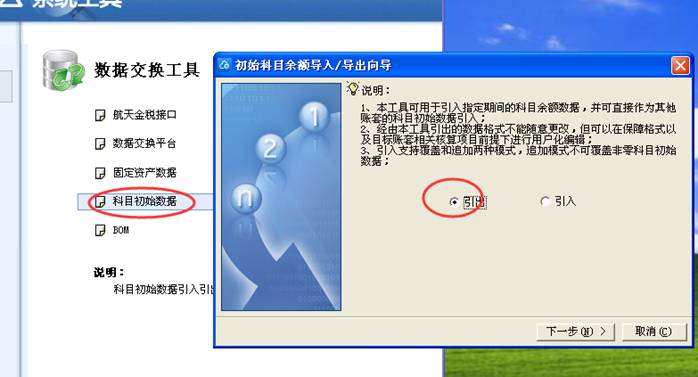 2、科目初始数据:导出指定期间数据,再引入数据。