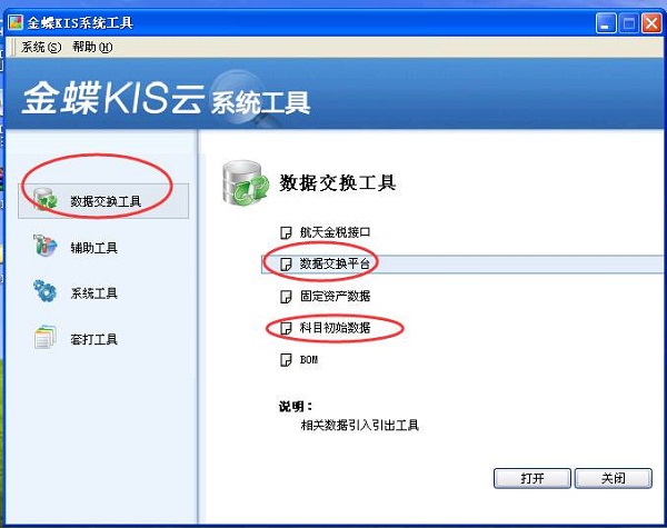 1、数据交换平台:引入和导出,先导出科目、部门、职员、仓库、客户、供货商,再引入科目、客户、供货商等。