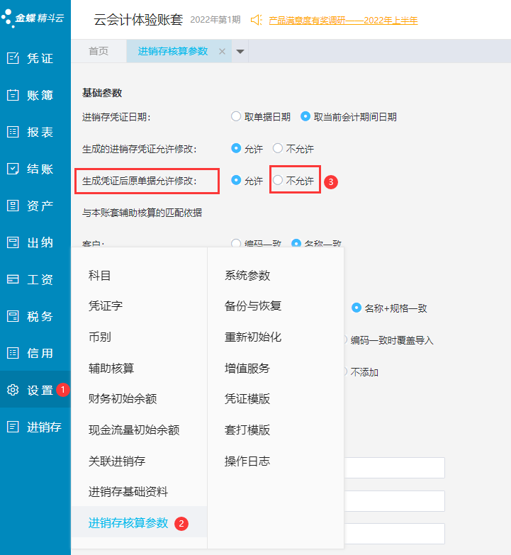 云会计-设置-进销存核算参数,生成凭证后原单据不允许修改。