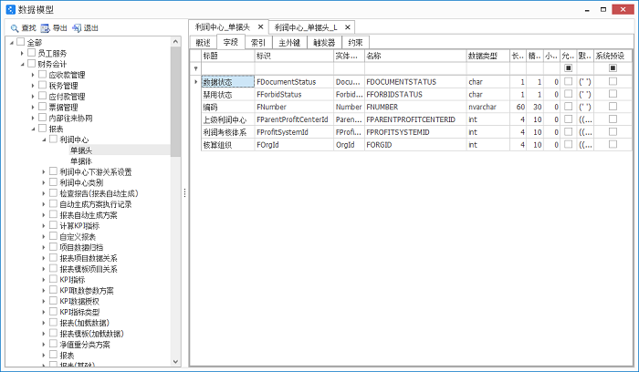 查看路径:【文件】-【数据模型】选择具体的单据进行查看。