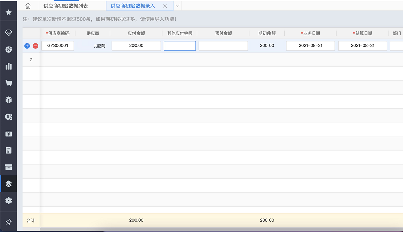 1、企业与供应商之间的往来余额,在启用账套时需要录入到系统中。