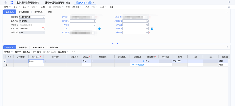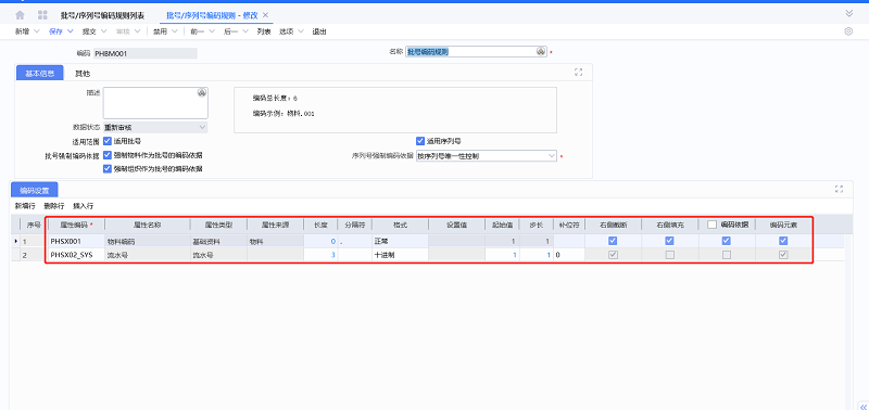 首先要创建一个批号属性,编码属性类型取基础资料,来源为物料,单据(需要什么单据自动生成这类批号,选择即可);单据字段(取值字段),设置完成后保存,打开批号编码规则,按第二张图设置后提交审核即可,这样采购入库单就生成了物料编码+流水号了(前提是,在新增物料库存页签启用了批号,并且维护了默认批号编码规则)