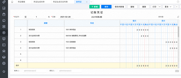 4、生成凭证示例如下: