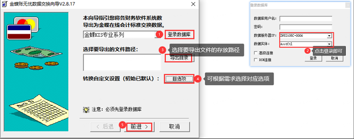 前提说明:上述财务软件转换账套的时候,必须在安装原做账软件的服务器电脑登录数据库才能转换。
