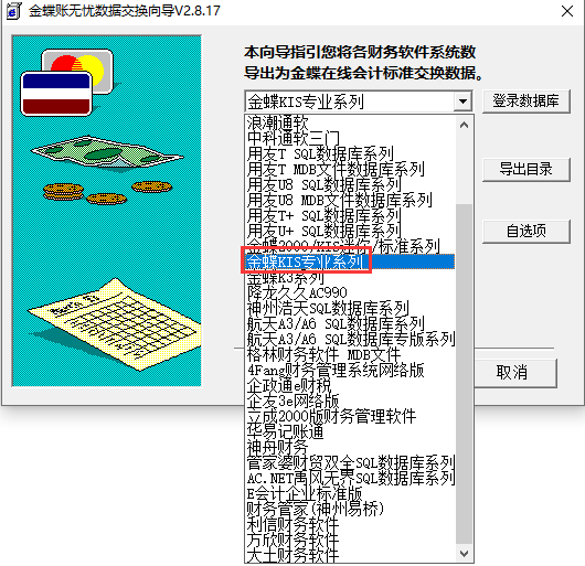上面表格中其他的软件也是同样的操作步骤,只是选择不同的软件名称,以下以金蝶KIS专业版为例: