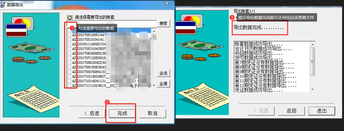 打开转换器选择财务软件名称【金蝶KIS专业系列】,点击【登录数据库】,然后点击【登录】,再选择【导出目录】(即转换好的账套文件需要放在哪个文件夹中),点击【前进】,选择需要转换的账套名称点击【完成】按钮,界面上显示“导出数据完成”提示,表示转换成功转换好的账套在前面设置好的导出目录中,文件格式为XML文件。