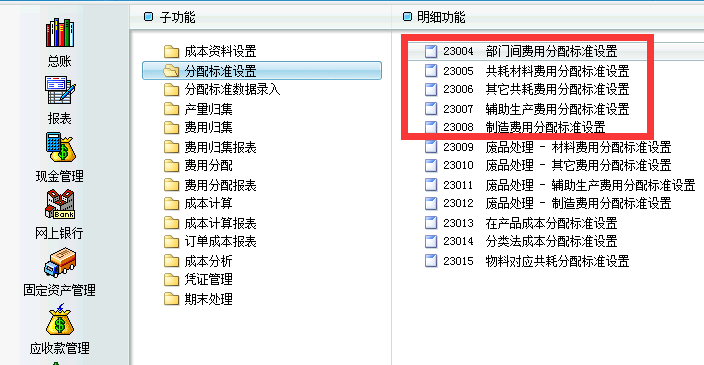 解决方法:实际成本应用中,先要进行费用标准的分配设置,然后再进行产量录入,费用录入收集,费用分配和成本计算,在启用成本核算的时候,就要设置好分配标准。