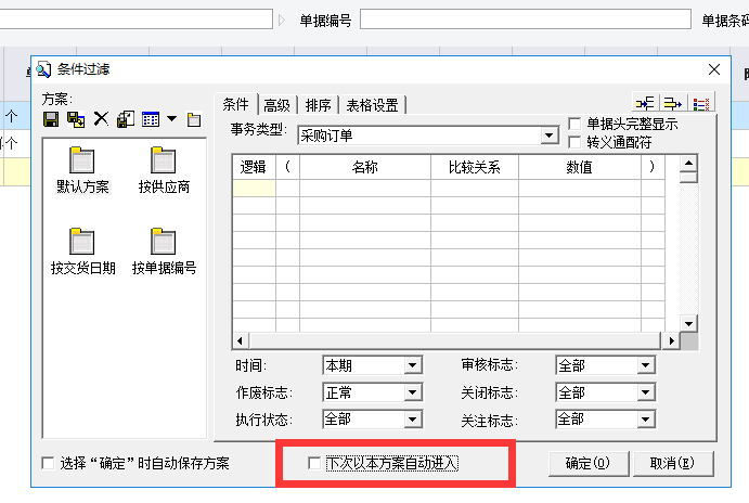 最近碰到比较多使用人员反馈说自己的电脑使用很慢,觉得会不会是网络问题;但实际排查来看跟网络环境没有关系;大部分使用人员会将单据过滤方案的下次以本方案自动进入勾选上,然后在打开单据维护过程中就会等待较长时间;