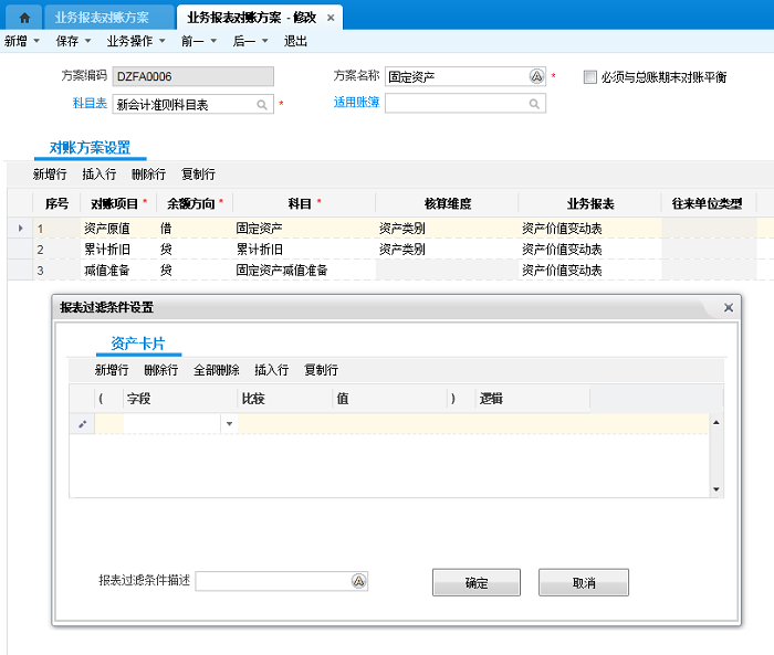 2、过滤条件支持资产卡片单据上的字段设置条件。