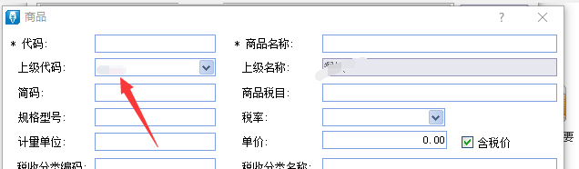 这样输入代码和商品名称。上级代码是 无。。