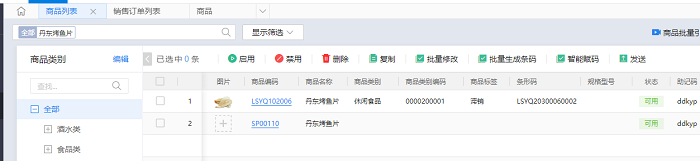示例:假设系统中的“丹东烤鱼片”存在2个重名同单位但是编码不同的商品: