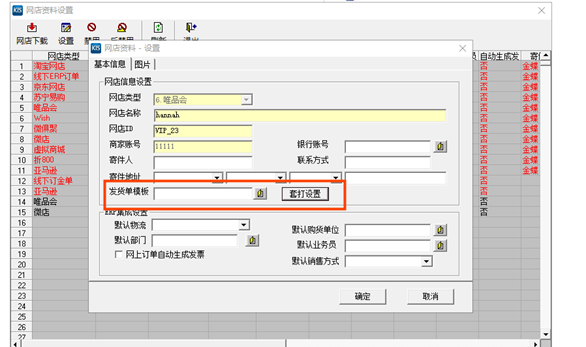 注意:这里引入的发货单和物流单的模板要与之前在网店资料设置和物流公司设置里选择的模板完全一致!!!