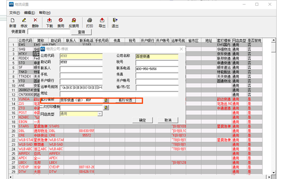在物流公司设置中,选择对应的物流公司,点击【修改】,选择对应需要的物流单套打模板(也可在此进行套打设置)