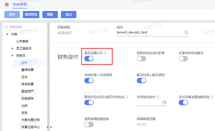 目前系统支持发票认列,即发票自动确认应付,支持发票自动生成财务应付单。