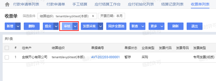 3、发票审核通过时,则相应的财务应付单会自动生成。