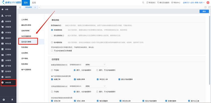 1、单击【系统设置】→【系统参数】→【应收应付参数】,即可以对应收应付进行设置。