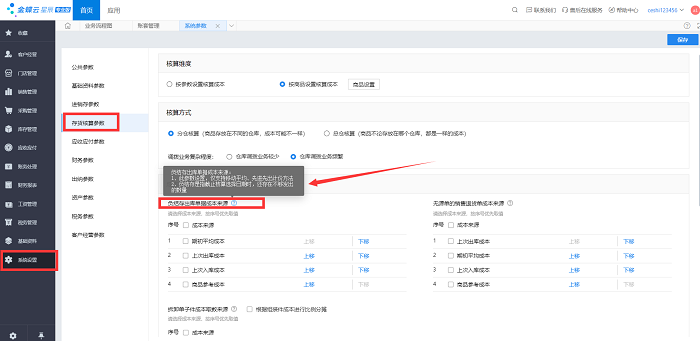 1)分仓核算:如果企业的各仓库中相同商品的成本是不一样的,且企业希望精确管理每个不同仓库商品的成 本,则建议选择此参数。使用分仓核算,在查询与库存成本相关的报表时,建议按仓库分别查询。 调拨业务复杂程度:在分仓核算时影响异价调拨时的成本核算,如商品在不同仓库被循环调拨则需要选择调拨 频繁(循环调拨举例:从仓库 A 调拨到仓库 B,仓库 B 调拨到仓库 C,仓库 C 调拨到仓库A