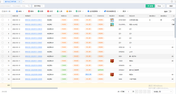 4、关闭:对启用状态的委外加工单进行手动关闭