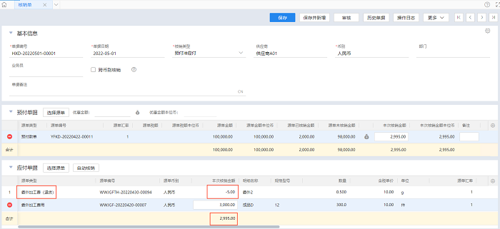 可以,委外加工费(退货)是应退款项,冲减企业对供应商的应付款项,可通过核销单在应付单据中冲减应付金额,如下图所示: