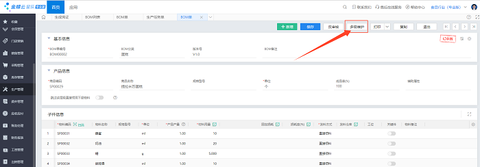 星辰生产云提供了BOM多级维护的功能,支持一次性建完某个产成品的全部BOM层级,为BOM的完整性提供了便捷维护的方式。