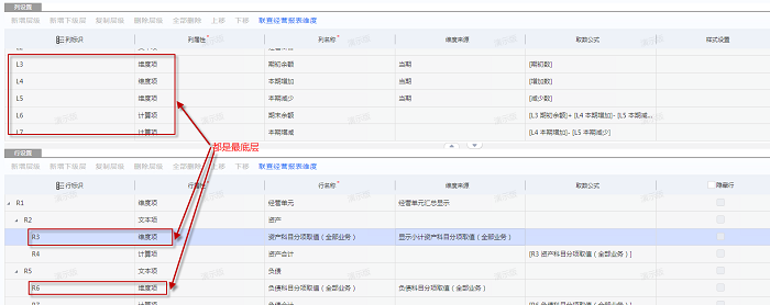 什么是最底层?如图:经营报表模板中,如果该层级没有下级层级,就是最底层。所以只有最底层的维度来源勾选了显示小计才会生效,非最底层的维度即使勾选了显示小计也不会生效。