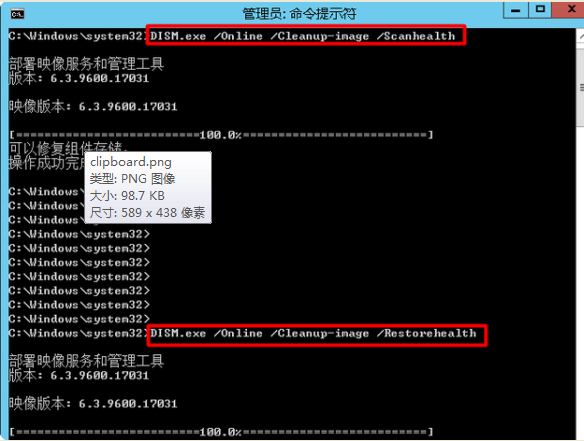 (2)利用DISM(Deployment Image Servicing and Management),就是部署映像服务和管理 (DISM.exe) 工具检查和修复系统环境。