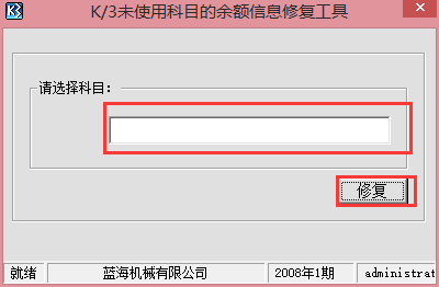 将下载的压缩包解压后在文件夹中的“K/3未使用科目的余额信息修复工具.exe”,右键选择【以管理员身份运行】,输入用户名密码之后进入工具主界面后,输入科目点击【修复】按钮即可。