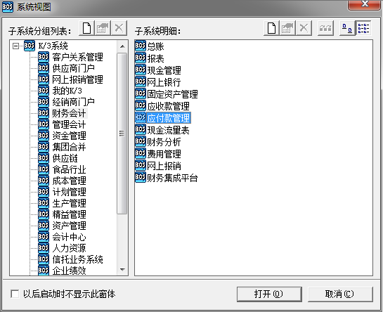 2、在K/3BOS界面,选择【财务会计】→【应付款管理】点击【打开】;
