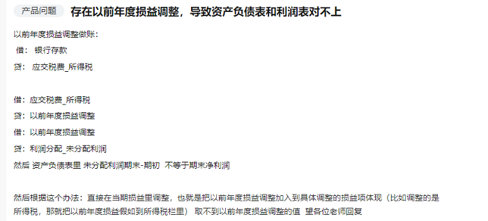 调整资产负债表——因为你是要以利润表为准——所以你得在资产负债表里面把 以前年度损益调整的数值去掉
