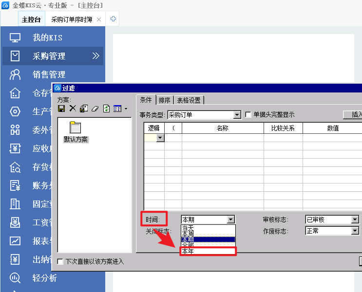 3、在序时簿过滤界面【时间】下拉框增加【本年】选项