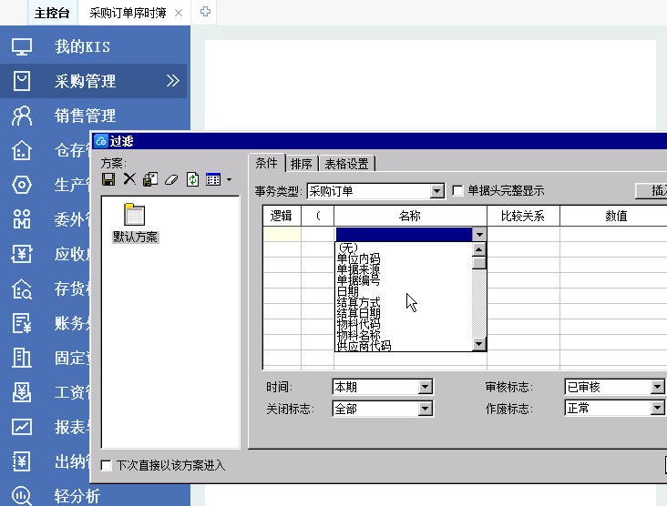 2、序时簿过滤界面,名称下拉的项目支持鼠标滚轮操作