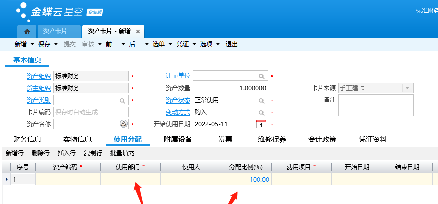 如何设置多部门分摊金蝶云星空中的固定资产