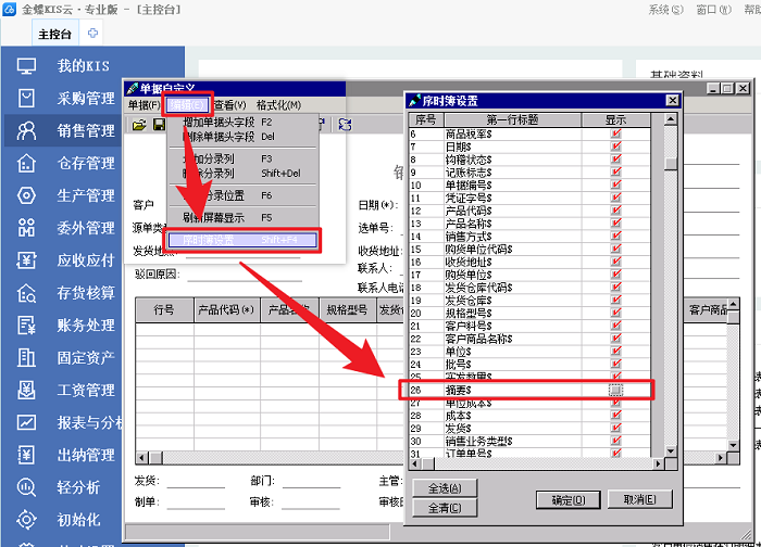 问题1:销售出库单序时簿表头看不到【摘要】字段