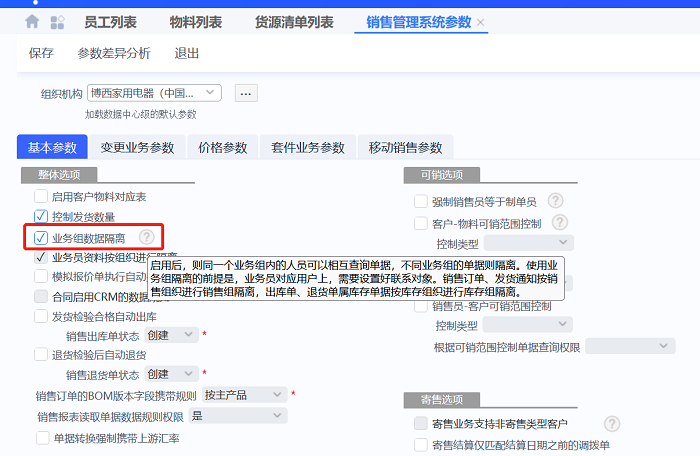 销售订单、发货通知按销售组织进行销售组隔离,出库单、退货单按库存组织进行库存组隔离。