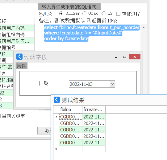 select fbillno,fcreatedate from t_pur_poorder where fcreatedate >= '#InputDate#' order by fcreatedate