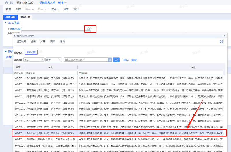 标准系统的组织业务关系本身是支持委托收付,如果需要产生内部结算,可以考虑建立委托收付关系
