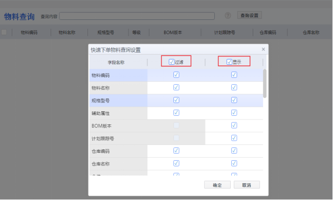 根据不同业务场景,用户勾选多个字段,即可作为物料库存查询过滤条件,不用再一个个的录入匹配条件,方便快捷;用户通过勾选字段,可对查询结果展示字段进行自定义设置,清晰明了。