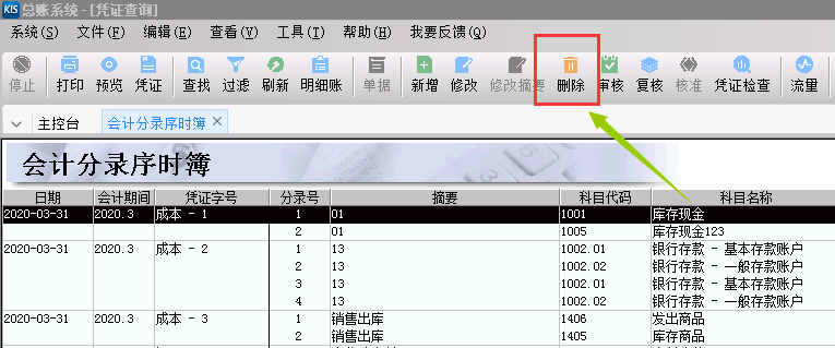 注意:凭证需要是未审核未过账的情况才能删除,若是已经审核过账了需先反过账反审核。