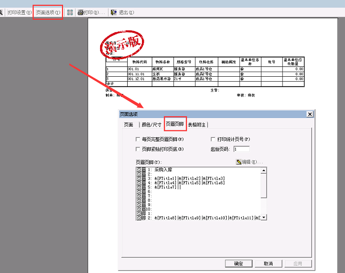 KIS专业版普通打印采购入库单如何设置页眉页脚?
