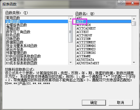4、左边选择[全部函数],右边找到[ACCT]函数点击[确定];