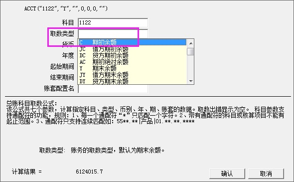 6、然后取数类型栏目点击F7选择[C期初余额],[开始期间][结束期间]都填1,其他栏目项不填写,点击确定即可。