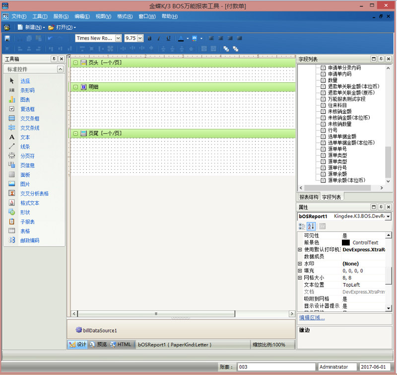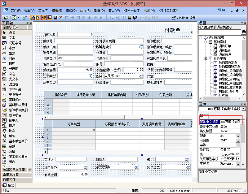 在金蝶K3软件bos万能报表工具中字段列表无法查询到单据中新增的金额字段,该如何处理?
