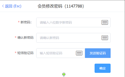 ②在PC端后台修改密码时需要会员发送验证码才可以改变: