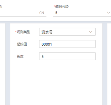 (4)规则类型-流水号:当选择规则类型为“流水号”,起始值和长度可录入